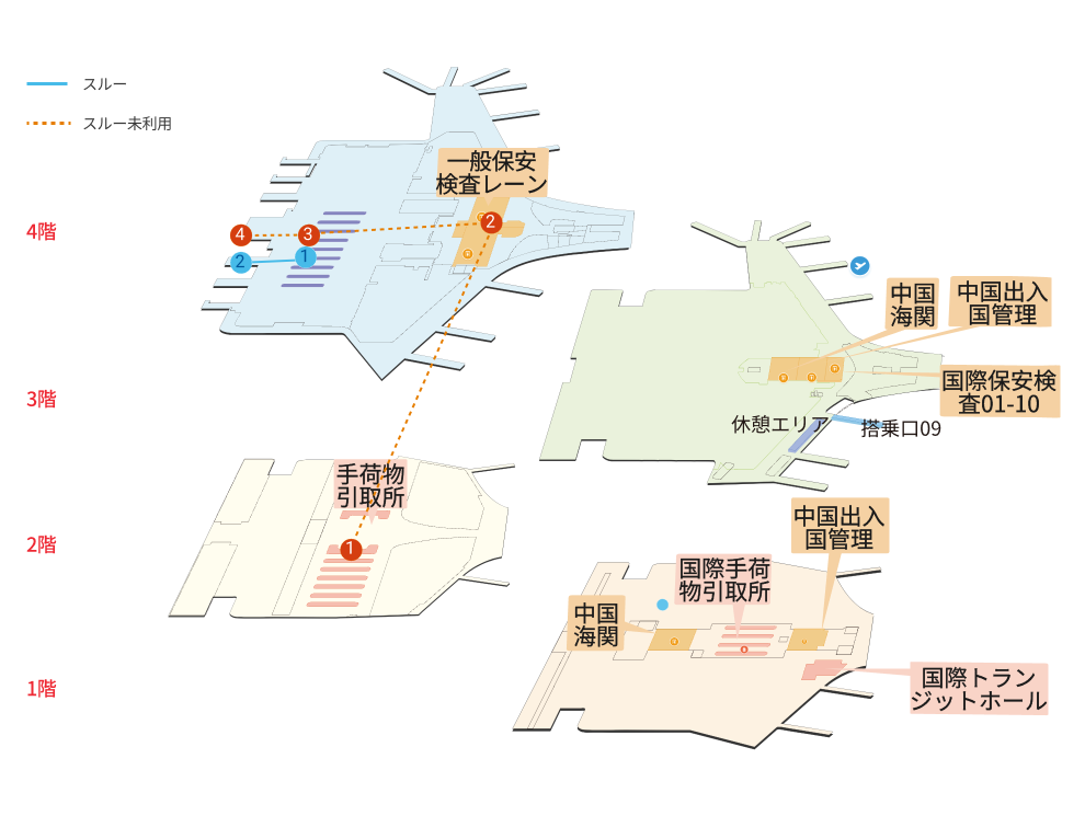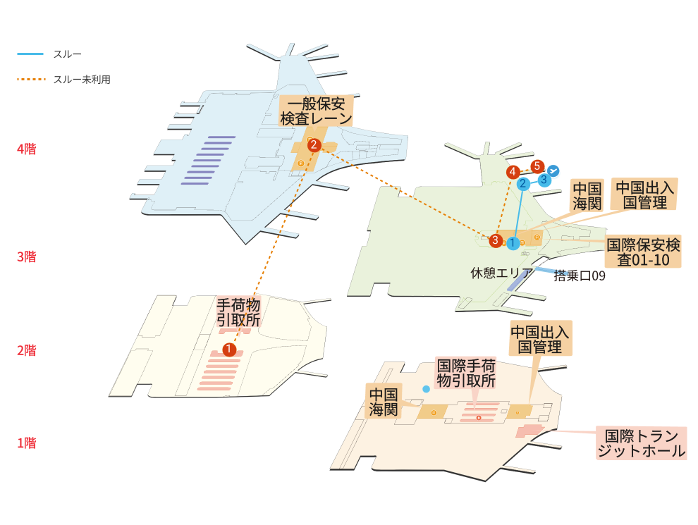 | スルーチェックインのトランジットプロセス未利用の場合 | |||