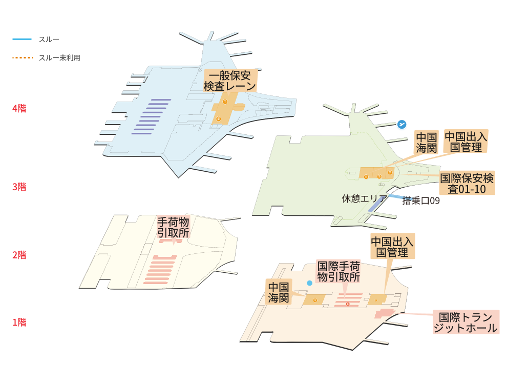 | 深セン空港到着後 | 手荷物の引き取り不要 | ||