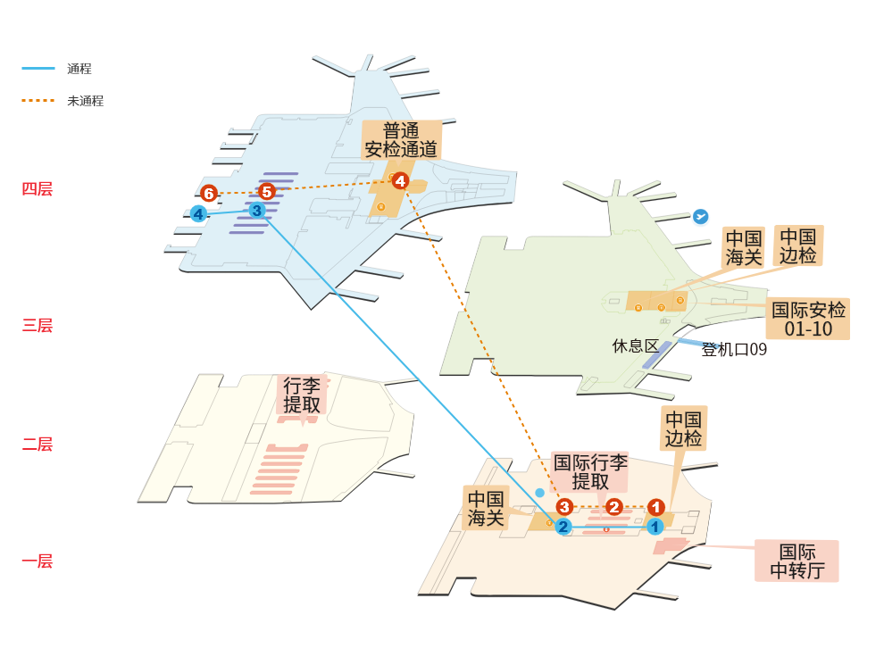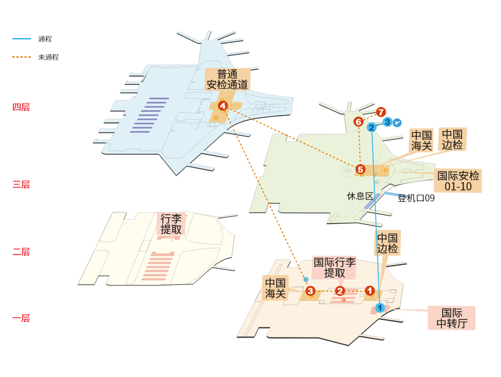 2.到达机场的出入境旅客请注意跟随机场中转标识进行转机。