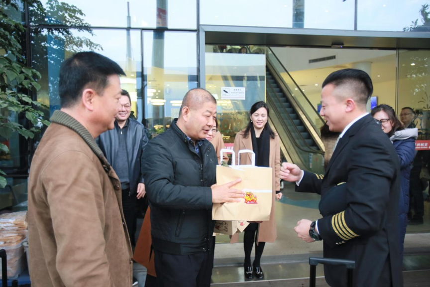 陈社長と邵斌副社長は、ミーティングの開催前にフライト前準備棟を訪れ、まさにこれから新年のフライト業務に就こうとしているパイロットやその他の乗務員に新年のプレゼントを贈り、安全なフライトと無事な帰還を祈りました。その後2人はオペレーションセンターを訪れ、センターで働く従業員に新年のあいさつをし、運航の詳細を尋ねました。
