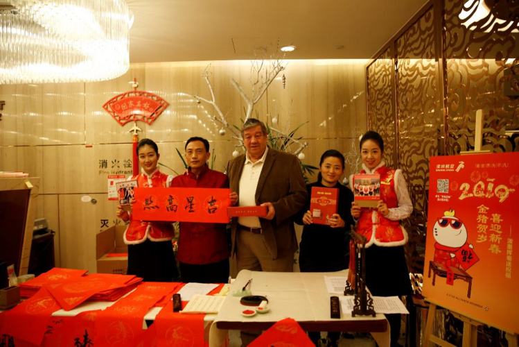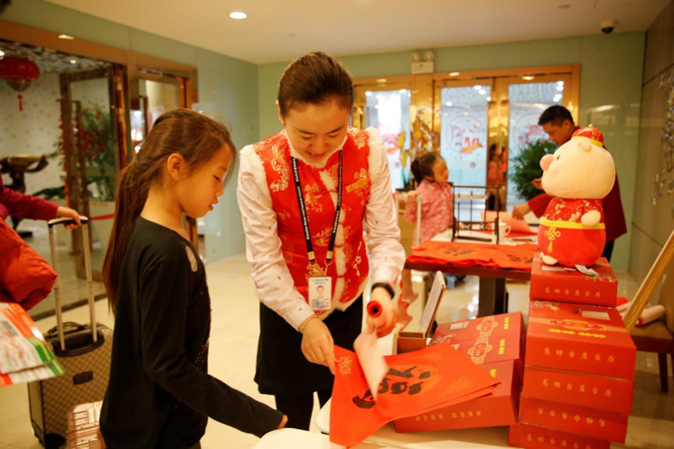 深セン航空グランドサービス部門は、1月28日に豚年(日本では亥年)を祝う行事を始めました。スタッフはターミナルビルにある乗客サービスエリアを「やっぱり我が家がいちばん」のテーマでていねいに飾り付けました。また空港では、お客さまのために、中国の書道が得意なスタッフに新年を祝う伝統の対句を書いてもらい、グランドサービスのスタッフが新年のための贈り物をお客さまに差し上げました。深セン航空のキングラウンジではお客さまに春節シリーズデザートと飲み物をサービスし喜んでいただきました。お客さまはこれらの行事を楽しまれ、特別な旅行体験を味わっていただくことができました。