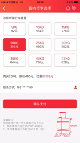 (* 国内逾重行李原价为经济舱全价的1.5%/千克,国际逾重行李区分不同航线进行阶梯式定价),具体以页面最终显示价格为准。